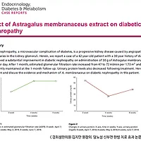 (유럽 국제 학술지에 게재된 논문으로 당뇨병성 신장병 전통한약치료 임상 사례 논문으로 신기능지표가 47% -> 72%까지 개선되었고 단백뇨가 감소하는 등의 한방치료의 유의적 효과가 있음을 보여주고 있습니다.)
